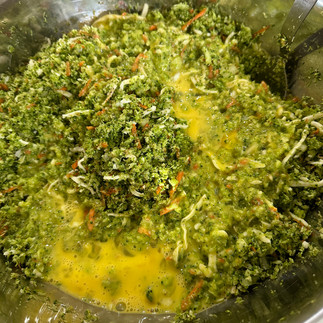 Strain Broccoli from water. Using the food processor add small batches of the broccoli florets and pulse until fine (don't over pulse, it will turn into mush) pour each prepared batch into large bowl